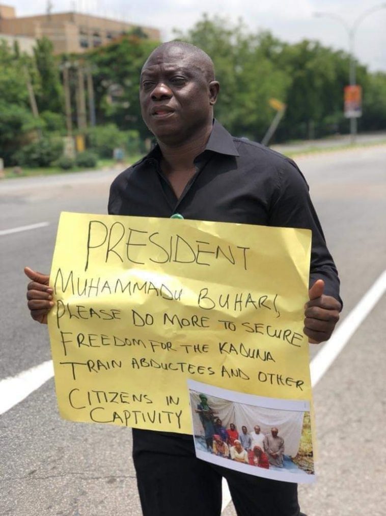 In what many described as a patriotic act of solidarity, a serving member of the House of Representatives, Hon. Bamidele Salam, walks bare-footed from the Unity Fountain Abuja to the National Assembly complex in solidarity with Kaduna train victims and other citizens in terrorists’ captivity, in Abuja, on Wednesday.